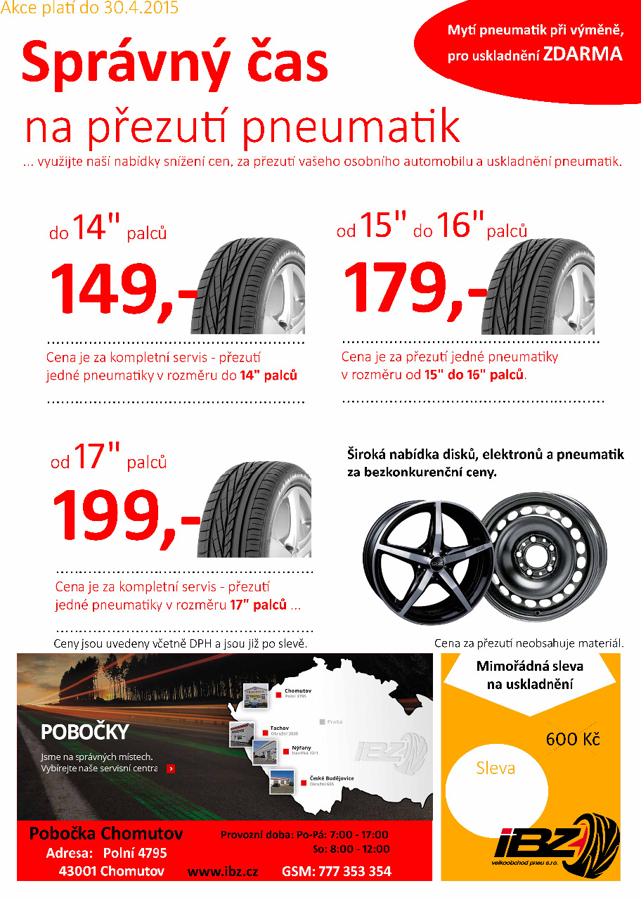 Atuální ceny a slevy pneu vám zdělíme u nás na pobočce.